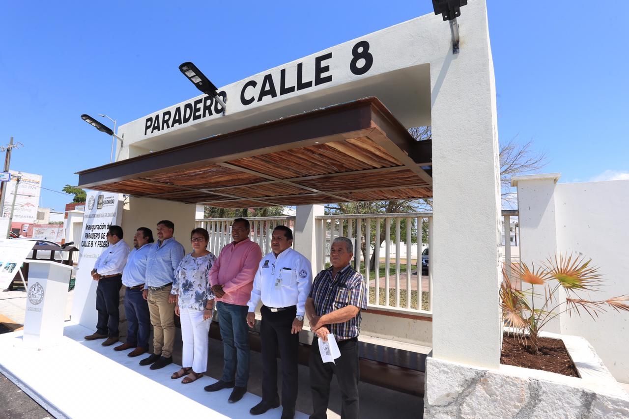 Sobre los tres paraderos, indicó que se beneficia a usuarios del transporte público y trabajadores de la hotelería, para lo cual se hizo una inversión de 1 millón 599 mil 662 pesos. La ubicación de éstos, es en la lateral de la carretera federal y el Arco Vial; otro entre la calle 6 y 8 Norte y un tercero en la avenida Constituyentes con avenida 120.