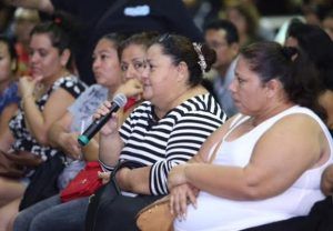 PLAYA DEL CARMEN, Quintana Roo, 1 de Abril.- La Presidenta Municipal de Solidaridad, Cristina Torres Gómez, escuchó y atendió a los vecinos del fraccionamiento La Guadalupana que asistieron a la Audiencia Pública ¡Que hable Solidaridad! a quienes recordó que este es el año para recuperar la grandeza del municipio y pidió el apoyo de todos para lograrlo.