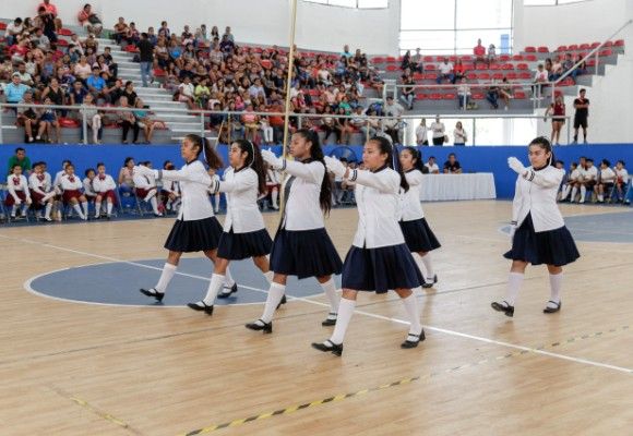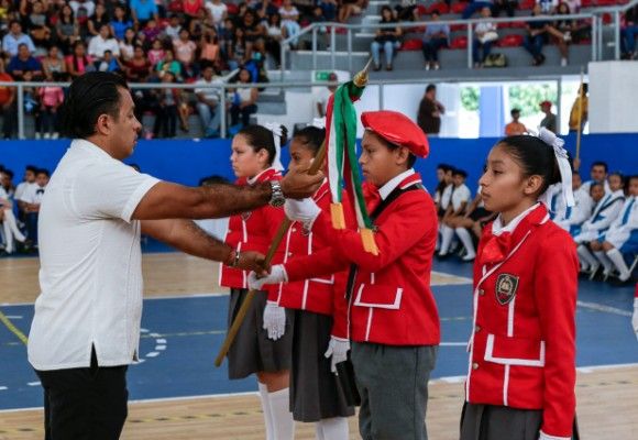 PLAYA DEL CARMEN, Quintana Roo, 3 de marzo.- Más de 130 estudiantes de primaria y secundaria participaron en el “Concurso municipal de escoltas de bandera” que se llevó a cabo en la Unidad Deportiva “Poliforum” con el objetivo de enaltecer los valores cívicos de respeto y lealtad hacia los símbolos patrios.