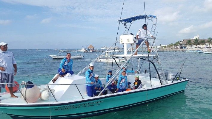 PUERTO MORELOS, Quintana Roo, 10 de julio.- Con la participación de más de treinta embarcaciones provenientes de distintas partes del estado y del país, se llevó a cabo exitosamente la primera edición del Torneo Internacional de Pesca Deportiva Femenil de Puerto Morelos “La Diosa del Mar”, con la técnica sustentable de catch and release (captura y libera).