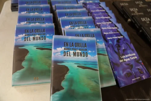 Cada escritor narró en breve su obra, “En la orilla del mundo”, en el caso de Mario Pérez, con su novela romántica, sobre el amor de una pareja que se enfrenta a la vida cotidiana y la problemática de una ciudad contemporánea.