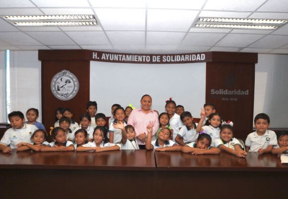 PLAYA DEL CARMEN, Quintana Roo, 7 de noviembre.- La Presidenta Municipal de Solidaridad, Cristina Torres Gómez, recibió en sus oficinas a un grupo de estudiantes de la Escuela Primaria “Rafael Kantun Chi”, del turno matutino, quienes recorrieron las instalaciones del Palacio Municipal e invitaron a los servidores públicos a participar en el evento “El kilómetro del libro”.
