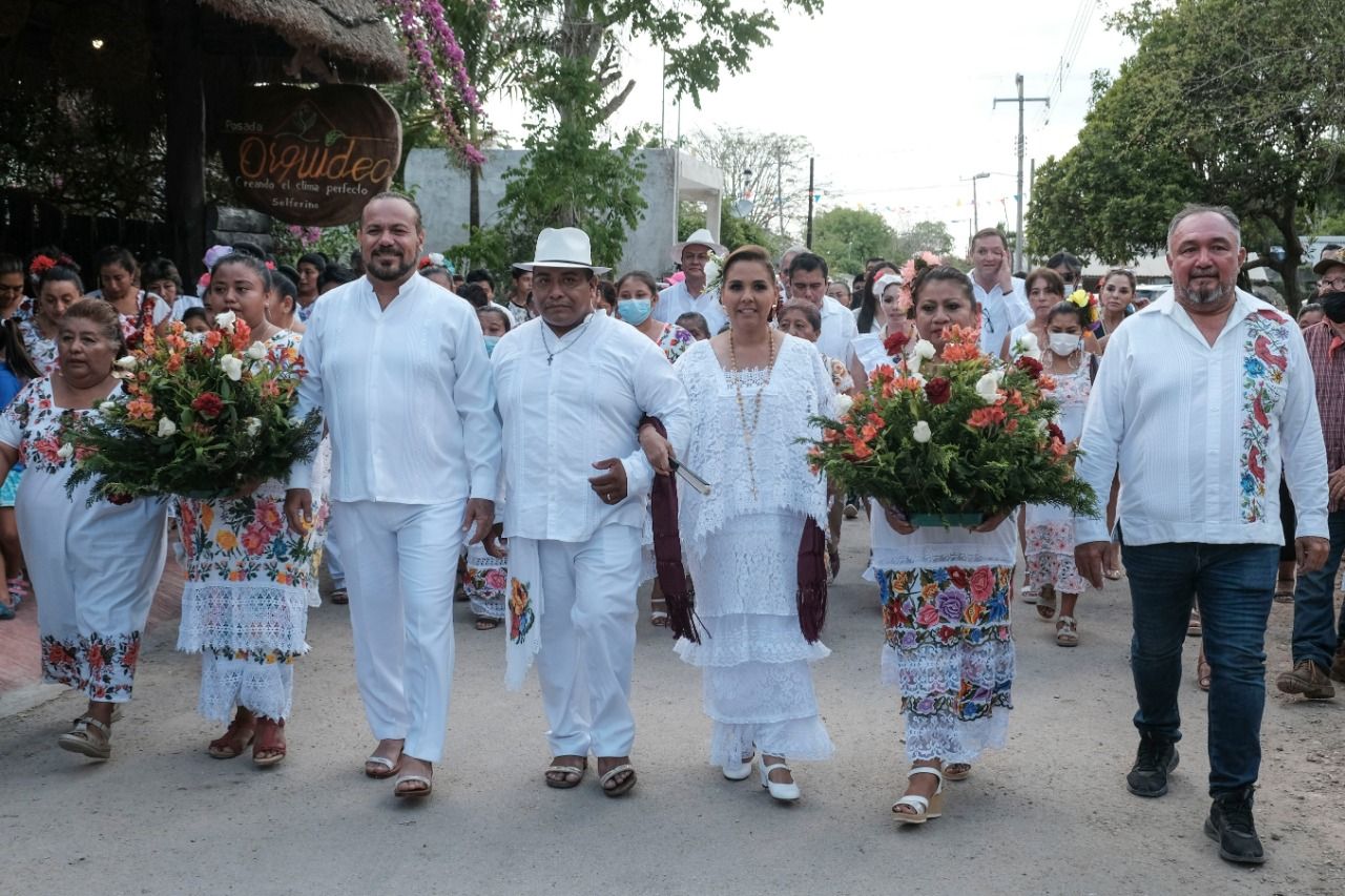 Previamente, la candidata morenista, quien fue recibida en la comunidad por mujeres vestidas con huipiles y el traje típico de Quintana Roo, quienes compartieron con ella y vecinos de Solferino relleno negro, el cual prepararon doña Landy y Telma, entre otras mujeres que colaboraron en la elaboración del tradicional guiso.