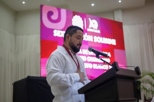 En el Salón Galerías de la capital quintanarroense, donde tuvo lugar la Sexta Sesión Solemne del H. Ayuntamiento de Othón P. Blanco, la Presidenta Municipal externó su más sincera felicitación y todo su reconocimiento al galardonado, un ciudadano ejemplar con destacada trayectoria en liderazgo juvenil, desarrollo comunitario y gestión social, que ha dejado una huella significativa en muchísimas personas a través de distintas organizaciones de la sociedad civil y con especial impacto en la asociación México y Caribe Jóvenes.