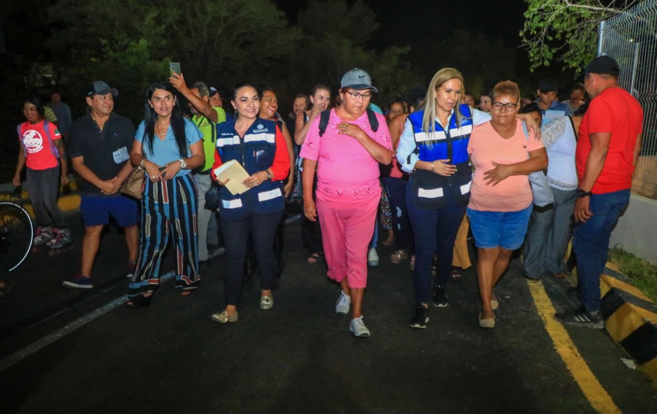 PLAYA DEL CARMEN, Quintana Roo, 05 de abril. – Comprometida con el medio ambiente y atendiendo las necesidades de las y los solidarenses para mejorar la movilidad urbana, la presidenta Lili Campos recorrió esta noche la recién construida Av. Diagonal 65, entre Colosio y CTM, que cuenta con ciclovía en ambos carriles, un cenote y árbol protegido en medio de una glorieta que abarca una parte de la vía de rodamiento.