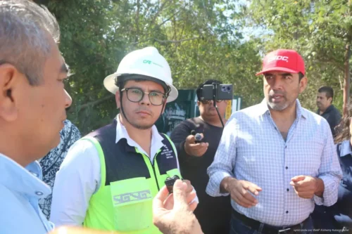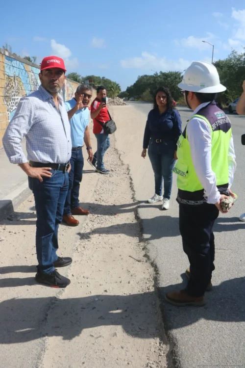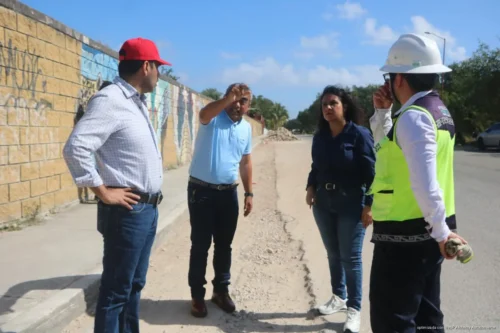 Playa del Carmen, 27 de febrero de 2026.– Con el objetivo de realizar las observaciones necesarias para no dañar la imagen urbana y afectaciones a la ciudadanía de Playa del Carmen, regidores del Ayuntamiento realizaron un recorrido de obra de introducción de línea de alimentación de la CFE, a la altura del fraccionamiento Palmas I.