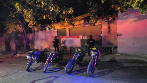 El segundo cateo fue cumplimentado en la Manzana 57, de la Supermanzana 221, donde fueron localizadas cuatro motocicletas, una con reporte de robo y tres más con posibles alteraciones en sus números de identificación vehicular.