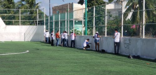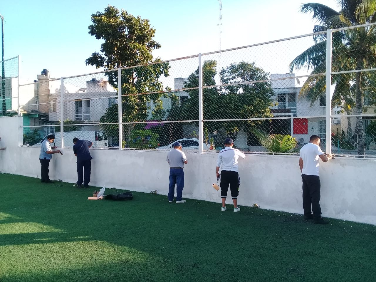 PLAYA DEL CARMEN, Quintana Roo, 26 de febrero.- Por segundo sábado consecutivo continuaron los trabajos de limpieza y mantenimiento que realizan integrantes de la brigada del programa social Contra el Calentamiento Global CROC – Playa del Carmen, en la cancha de Futbol Rápido del fraccionamiento Villas Riviera, donde el próximo 4 de marzo, arrancará la Liga de Futbol Gastronómica, edición 2022, con la participación de equipos de trabajadores de diversos hoteles de la Riviera Maya.