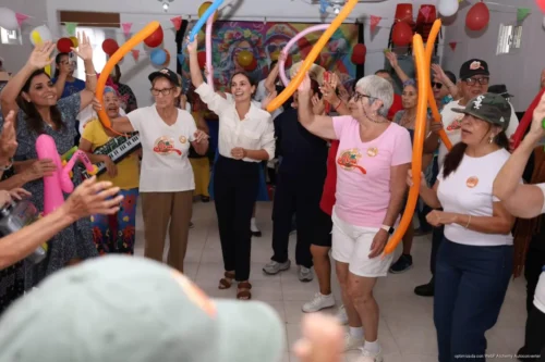 Cancún, Q. R., a 10 de abril de 2026.- La Presidenta Municipal, Ana Paty Peralta, y la Presidenta Honoraria del DIF Quintana Roo, Verónica Lezama Espinosa, realizaron la reinauguración del Centro de Oportunidades, Bienestar y Unidad Social (COBUS) de la 510, con una convivencia y la celebración del segundo aniversario del programa “ABUS VIERNESTAR”, con adultos mayores.