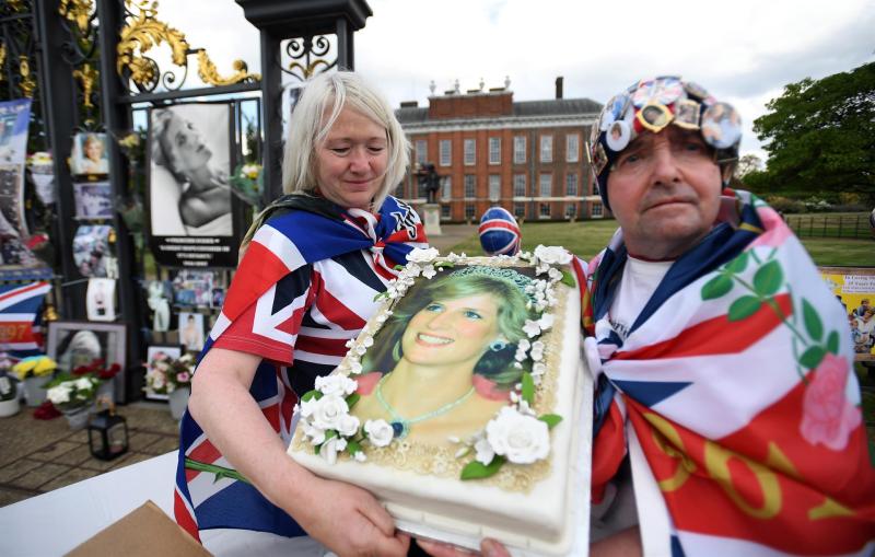La reja del palacio de Kensington, la que fuera la residencia londinense de la princesa, está hoy decorada con una gran pancarta con fotos de Diana, flores, una bandera británica y también un adorno floral en blanco y rosa que dice: “Princesa Diana”.