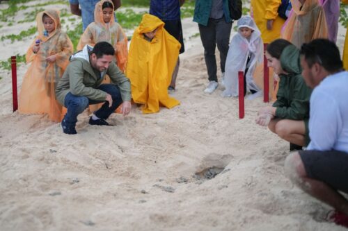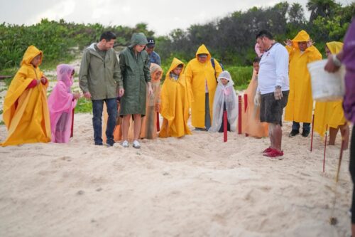 Cozumel, Quintana Roo, 8 de noviembre de 2025.— El presidente del Congreso del Estado y líder del Partido Verde en Quintana Roo, Renán Sánchez Tajonar, junto a su esposa Vale, visitó el Campamento Tortuguero San Martín en la zona oriente de Cozumel, donde participó en la liberación de crías de tortuga marina, reafirmando su compromiso con la conservación ambiental y la educación ecológica en la isla.
