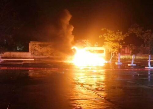 A las dos de la madrugada de este viernes se reportó al número de emergencias 911 del incendio de un vehículo en el estacionamiento del súper mercado Chedraui ubicado en la avenida 45 sur con calle tres sur de la colonia Centro, cometido con bombas caseras por dos sujetos que huyeron en una motocicleta, uno de los cuales viste de camisa blanca y porta una mochila color negro.