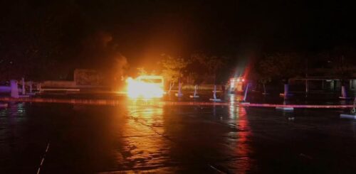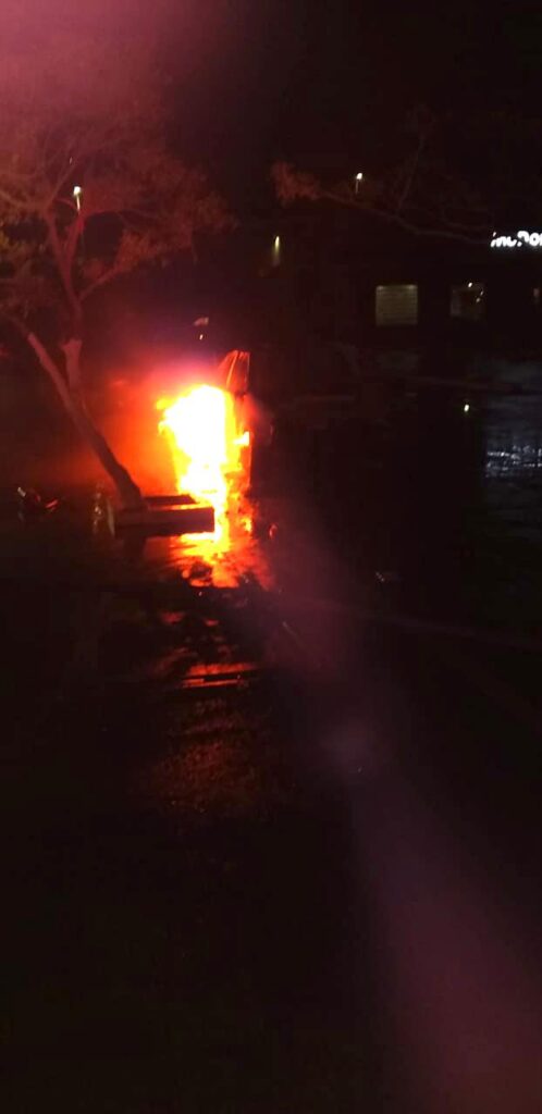 PLAYA DEL CARMEN, Quintana Roo, 06 de noviembre.- Un ex empleado del súper mercado Chedraui en el estacionamiento del establecimiento, en complicidad con otro sujeto, con una bomba molotov incendió el automóvil de la jefa de prevención del establecimiento, por una posible venganza, ya que, por malos manejos fue despedido la semana pasada, siendo detenidos por la Policía Municipal cuando se daban a la fuga en una motocicleta.