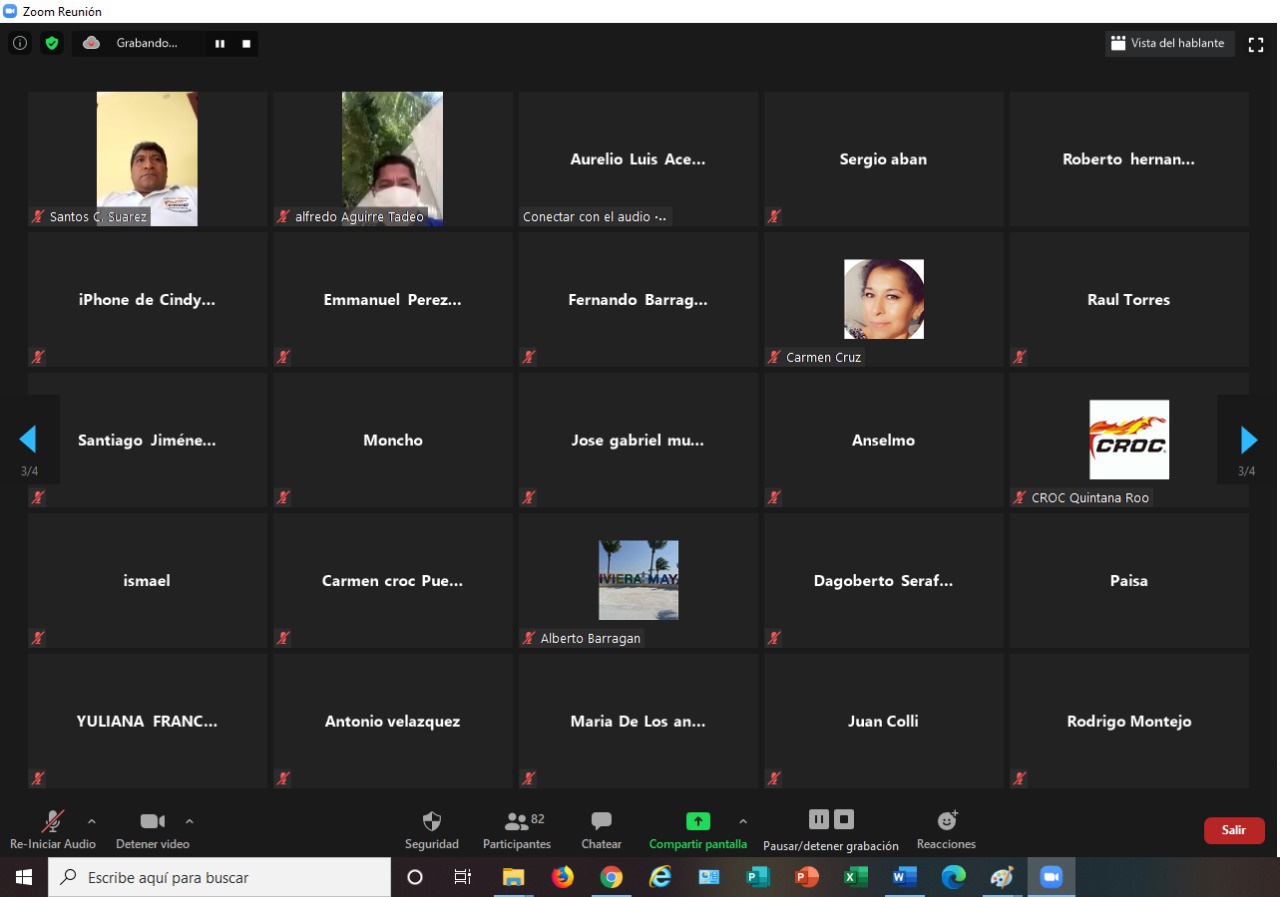 PLAYA DEL CARMEN, Quintana Roo, 1 de septiembre .- De manera virtual se clausuró la jornada nacional CROC-CIJ: “Sana Convivencia en el Trabajo y Salud Emocional en tiempos de COVID-19”, que la Confederación Revolucionaria de Obreros y Campesinos (CROC) Quintana Roo realizó en conjunto con el Centro de Integración Juvenil (CIJ), jornada que presidió el dirigente estatal, Martín de la Cruz Gómez.