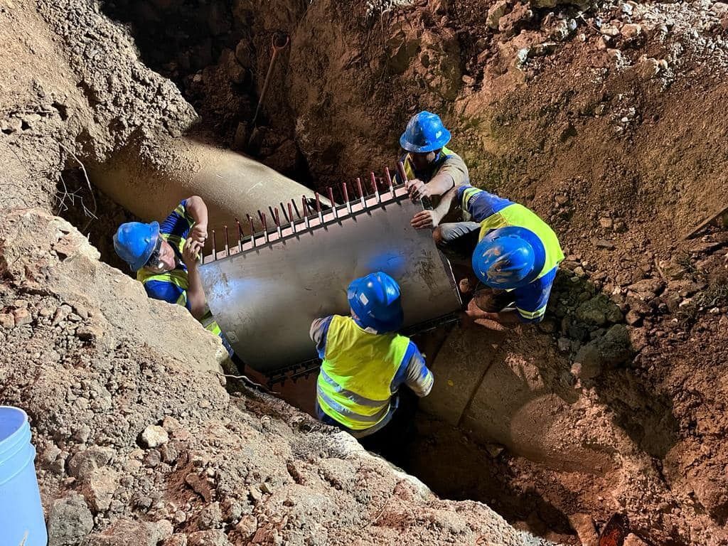 Las brigadas de Aguakan acudieron  al lugar de los hechos para comenzar las maniobras de reparación de la fuga donde, de entrada, les costó trabajo identificar el lugar de la fuga por la cantidad de agua que había y que formó  prácticamente un río.