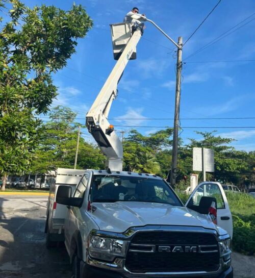 Puerto Morelos, Quintana Roo a 27 de octubre de 2025.– La Secretaría de Servicios Públicos de Puerto Morelos a través de la dirección de Alumbrado Público, mantiene en marcha el programa “Puerto Morelos Brilla”, para dotar de luz las calles de la cabecera municipal, así como de la delegación de Leona Vicario, indicó el secretario Leonel Salazar Trejo.