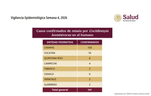 CHETUMAL, Quintana Roo, 11 de febrero. – Quintana Roo, reportó seis casos de Miasis en personas causada por el Gusano Barrenador, de acuerdo con el Informe del Sistema de Vigilancia Epidemiológica de la Secretaría de Salud del Gobierno Federal.