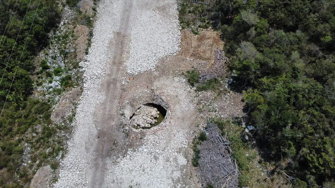 PLAYA DEL CARMEN, Quintana roo, 15 de mayo.- Ambientalistas integrantes de la organización Selvame del Tren reportaron los primeros colapsos en el tramo 5 del Tren Maya, en Playa del Carmen, Quintana Roo, debido al sistema de cenotes que ubicados en la vía.
