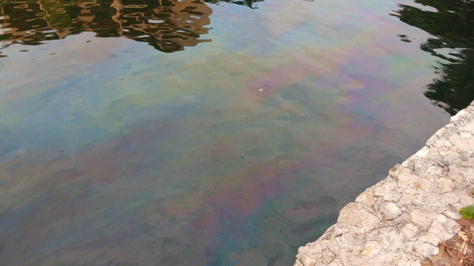 Mediante una imagen captada por residentes del exclusivo lugar que se ubica al sur de Solidaridad, alertaron de este derrame de diésel que se parecia como una capa sobre el agua.