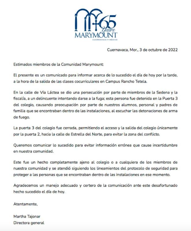 El Colegio Marymount de Cuernavaca confirmó la detención de un sujeto en una de las puertas de su Campus en Rancho Tetela.