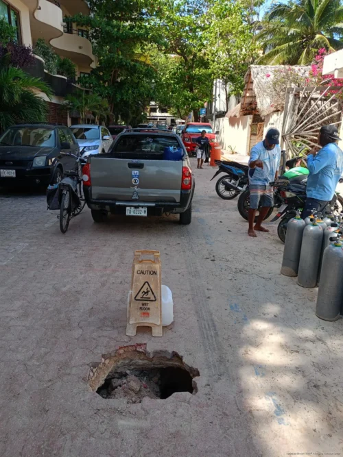 PLAYA DEL CARMEN, Quintana Roo, 04 de marzo de 2026.– Vecinos y usuarios de la zona turística reportaron la aparición de un ligero socavón en la calle 14 con Primera, en la zona de playas de Playa del Carmen, situación que ha generado preocupación por el riesgo de que el hundimiento pueda ampliarse.