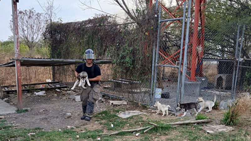 Una camada de perros y su mamá fueron rescatados en medio de los incendios en Nuevo León.