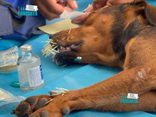 “Ya se le anestesió y se le va a proceder a retirar lo que viene siendo las espinas que tiene, posterior será trasladada al Centro de Atención Canina de Chetumal”, concluyó
