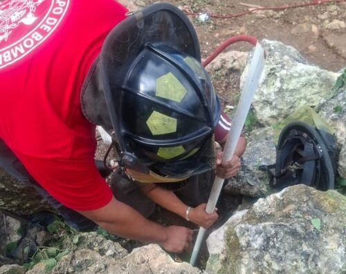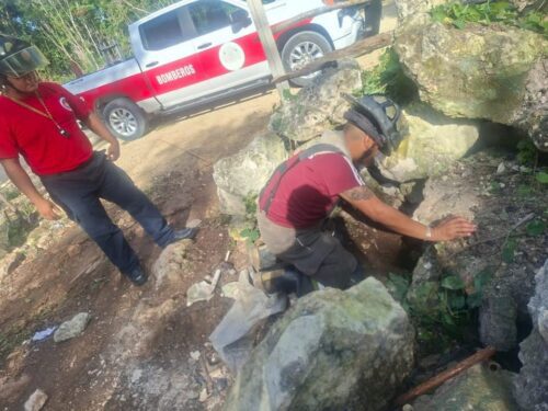 CANCÚN, Quintana Roo.– Elementos del H. Cuerpo de Bomberos Cancún rescataron a un cachorro de aproximadamente dos meses de edad que había caído en un pozo de más de cinco metros de profundidad, en un hecho que movilizó a los cuerpos de emergencia.