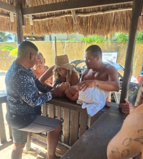 En una segunda acción, los guardavidas atendieron a una menor de 10 meses de edad que sufrió un desvanecimiento en el área de playa a la altura de la calle 40. La menor presentaba signos vitales débiles, por lo que los elementos le brindaron primeros auxilios y mantuvieron vigilancia continua hasta su recuperación, siendo entregada de forma estable al personal de la ambulancia del ERUM.