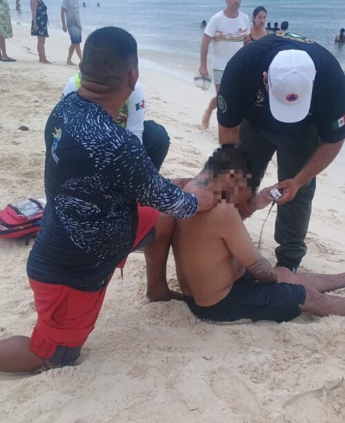 Playa del Carmen, Quintana Roo.- Como parte del compromiso del Gobierno Municipal que encabeza la presidenta Estefanía Mercado por mantener playas seguras para residentes y turistas, elementos del cuerpo de guardavidas de la Secretaría de Protección Civil, Prevención de Riesgos y Bomberos realizaron dos acciones de atención y rescate exitosas en la zona costera.
