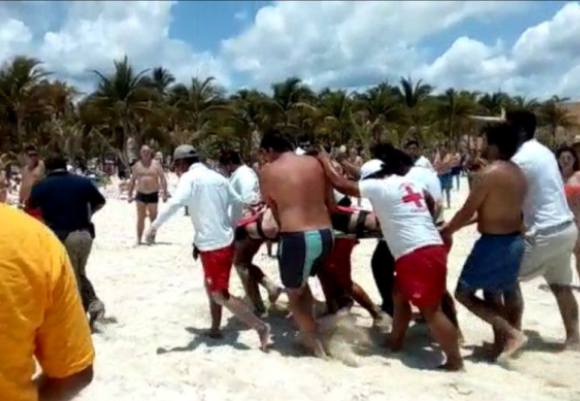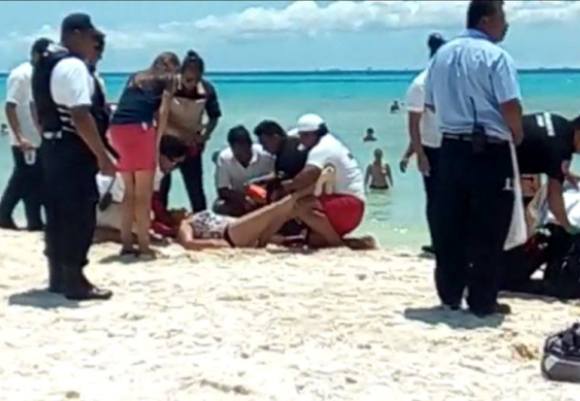 PLAYA DEL CARMEN, Quintana Roo, 22 de Abril.- Rescatan guardavidas a un hombre de la tercera edad de morir ahogado en las aguas del Mar Caribe; su acompañante también es atendida en el lugar por paramédicos tras sufrir una crisis nerviosa.