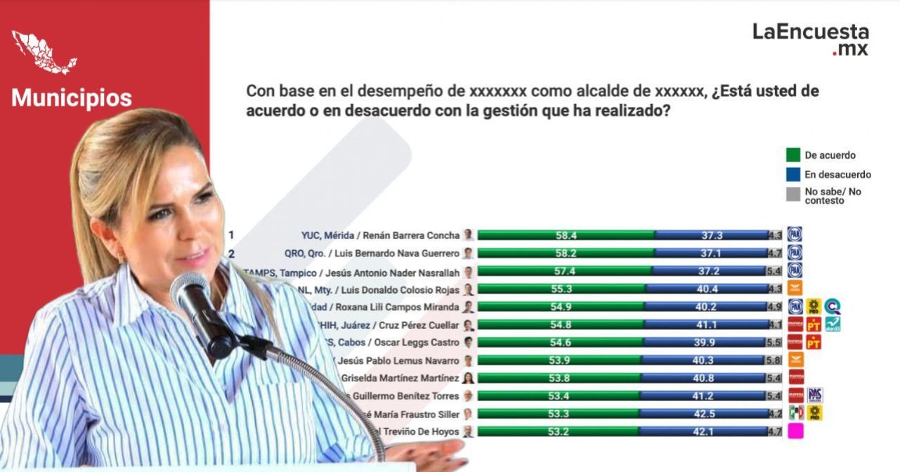 Así lo dio a conocer LaEncuesta.mx, que presentó el informe de la encuesta que cuenta con un nivel de confianza del 95 por ciento y que se realizó para conocer la percepciones los ciudadanos acerca del alcalde del municipio en el que habitan  a nivel nacional, calificando a 50 gobernantes.