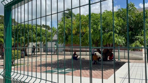 MB CHETUMAL, Quintana Roo, 7 de agosto. — El Instituto Mexicano del Seguro Social (IMSS) cercó el Hospital General de Zona y Medicina Familiar en Chetumal, para restringir el acceso de los ciudadanos, solo las personas que presenten un carnet, tendrán acceso a consultorios y patios, algo que impide que ciudadanos utilicen las bancas del jardín para descansar de las largas esperas, para recibir atención médica.
