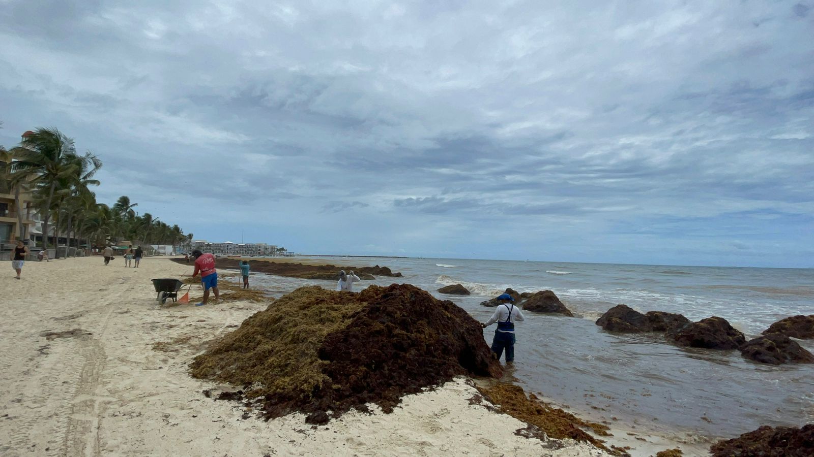 Retiran 300 toneladas de sargazo diarias en playas de Solidaridad en los últimos 15 días.