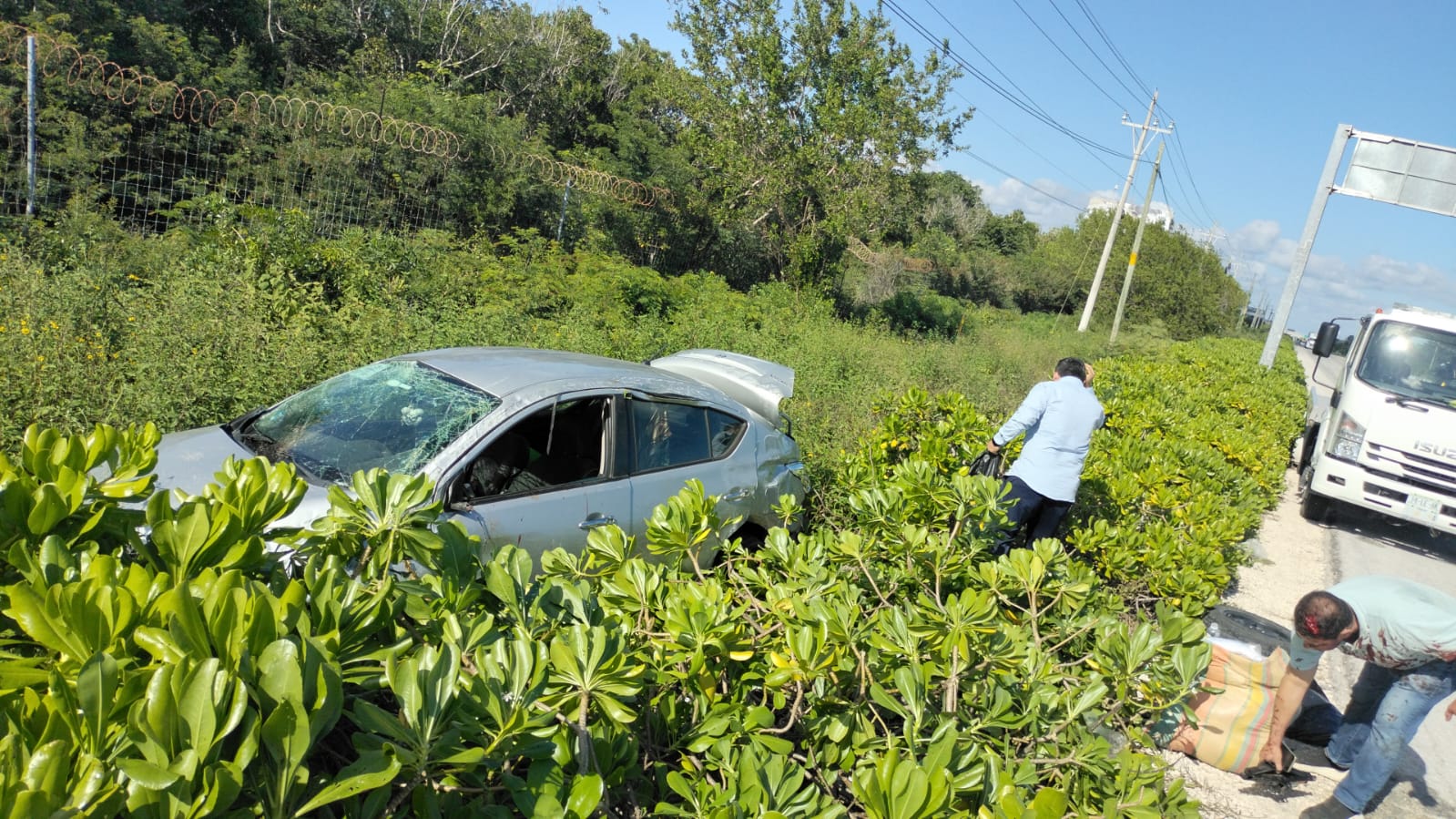 PLAYA DEL CARMEN, Quintana Roo, 10 de enero de 2026.— Un conductor de un vehículo particular resultó lesionado luego de perder el control de su unidad y volcar sobre la carretera federal 307, en el tramo Tulum–Playa del Carmen, presuntamente a causa del reventón de uno de los neumáticos.