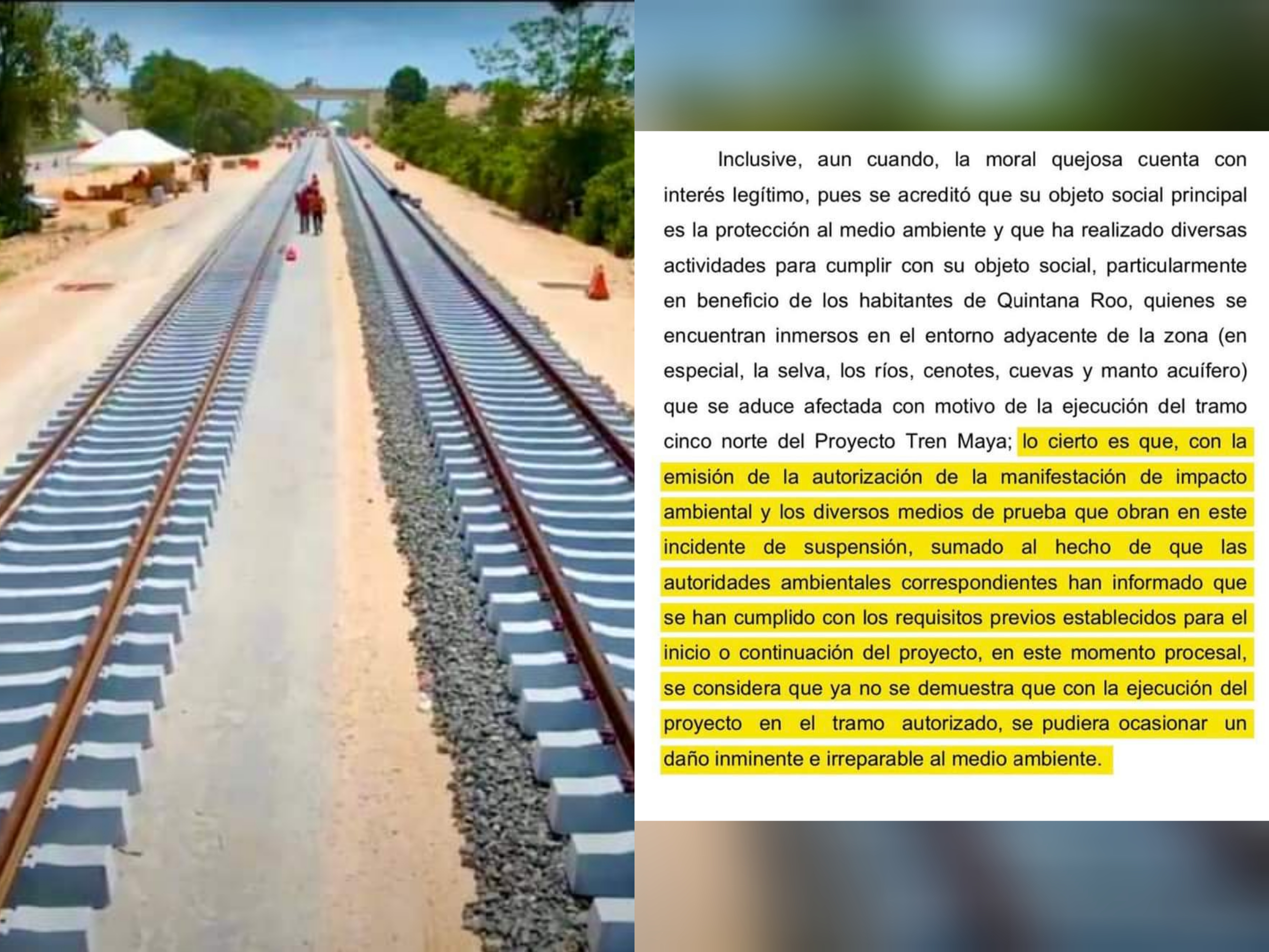 “Fuimos notificados sobre la revocación de dos suspensiones que había a la obra del Tren Maya en el Tramo 5 Norte, derivado de los amparos 923 y 1137/2022. Ya no se demuestra que se pudiera ocasionar un daño inminente e irreparable al medio ambiente, dice el resolutivo”,explicó