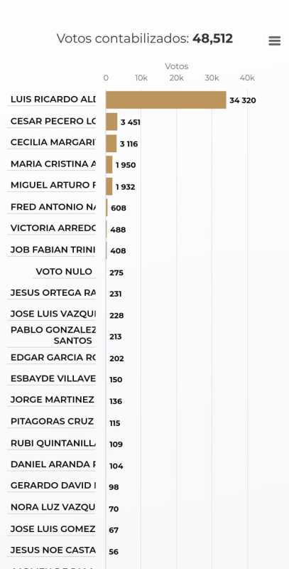 Alrededor de las 22:10 h Carlos Maldonado dio a conocer los resultados de la elección, en los que se contabilizaron más de 52 mil votos para Aldana.