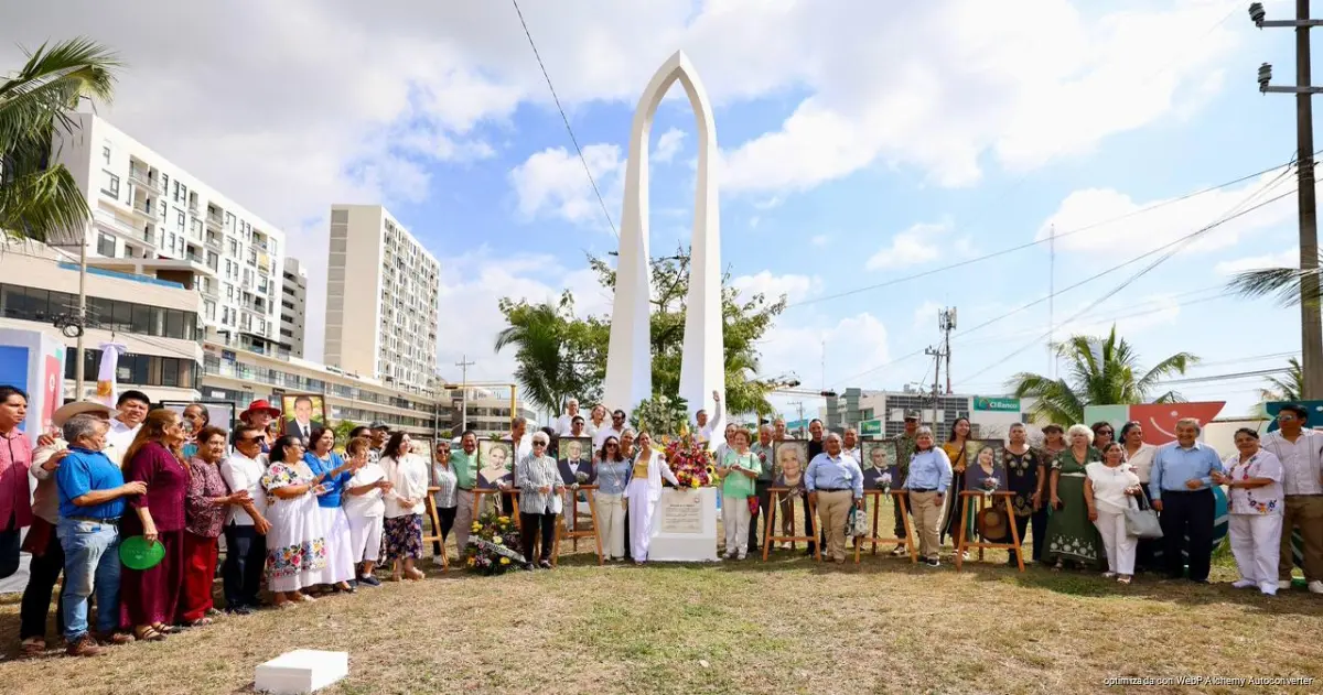Cancún, Q. R., a 17 de abril de 2026.- Al ritmo de las melodías de “Me está llamando Cancún”, y en el marco del 56 Aniversario de la fundación de la ciudad, la Presidenta Municipal, Ana Paty Peralta, encabezó junto a decenas de cancunenses un homenaje a los primeros pobladores de este destino turístico, al colocar una ofrenda floral donde se honró su vida, esfuerzo y legado, recordándolos con profundo respeto.