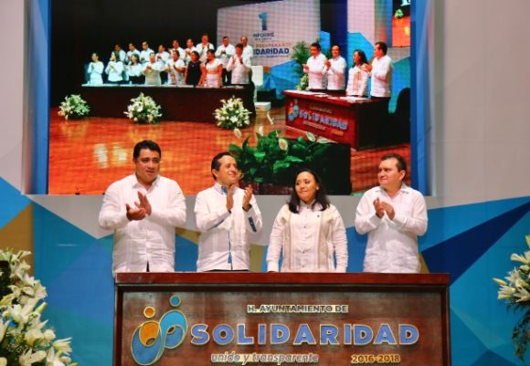 “A un año de gobierno, en Solidaridad cambiamos hacia una actitud de servicio, cercanía, transparencia, unidad y participación comunitaria”, por ello, luego de haber recibido un gobierno con la deuda per cápita más grande del país, la cual ascendía a más de 1.4 mil millones de pesos, hoy se construyen obras y se realizan acciones con recursos propios.