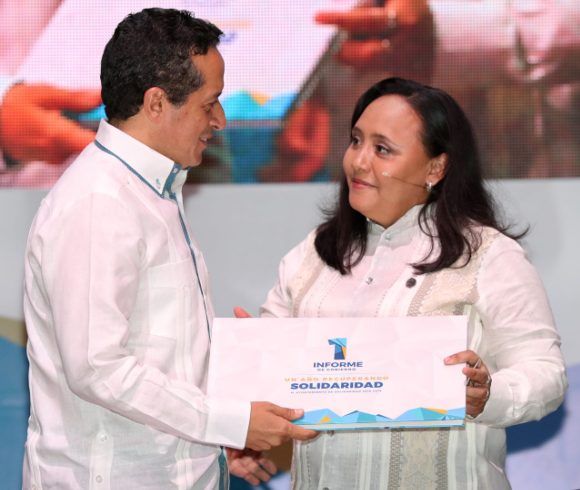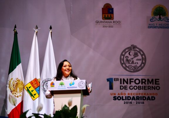 PLAYA DEL CARMEN, Quintana Roo, 14 de septiembre.- “No permitamos que nada ni nadie nos quite el orgullo de ser solidarenses. Hoy, frente a ustedes, refrendo mi compromiso de seguir trabajando incesantemente para recuperar la grandeza de nuestro municipio”, afirmó la Presidenta Municipal de Solidaridad, Cristina Torres Gómez, durante la presentación de su Primer Informe de Gobierno ante la ciudadanía, el Gobernador del Estado, Carlos Joaquín González, y los representantes de los tres poderes de gobierno.