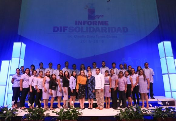 PLAYA DEL CARMEN, Quintana Roo, 28 de noviembre.- La Presidenta Honoraria del DIF Solidaridad, Claudia Torres Gómez, presentó su Primer Informe de labores en el que destacó las acciones a favor de los grupos más vulnerables, la cercanía con los ciudadanos y el acceso de las personas hacia los servicios que ofrece esta institución.