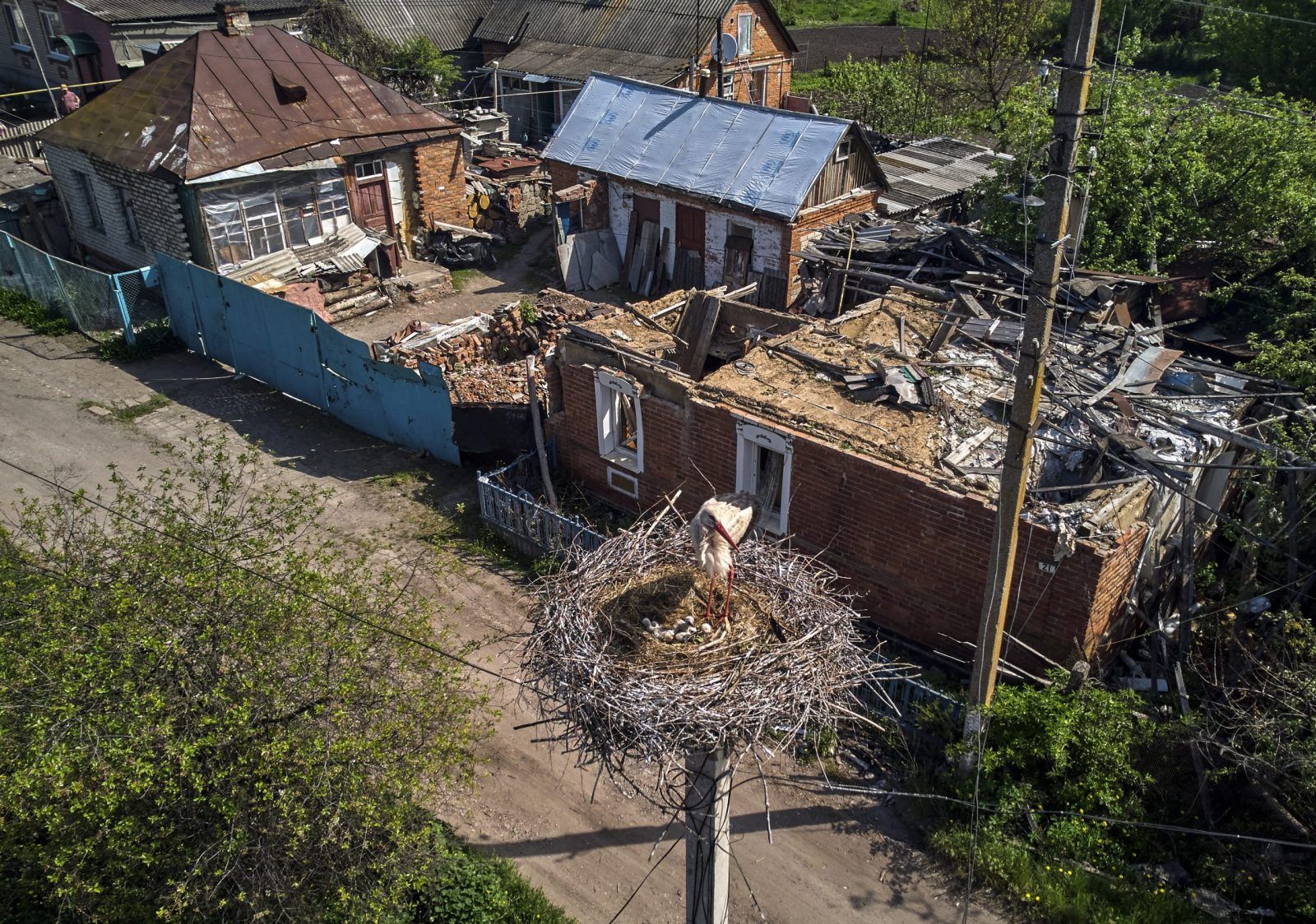 Trozos de otro misil, presuntamente interceptado por las fuerzas ucranianas, cayeron en el zoológico de la ciudad, en el distrito de Shevchenkivskyi, donde se evalúan aún los daños.