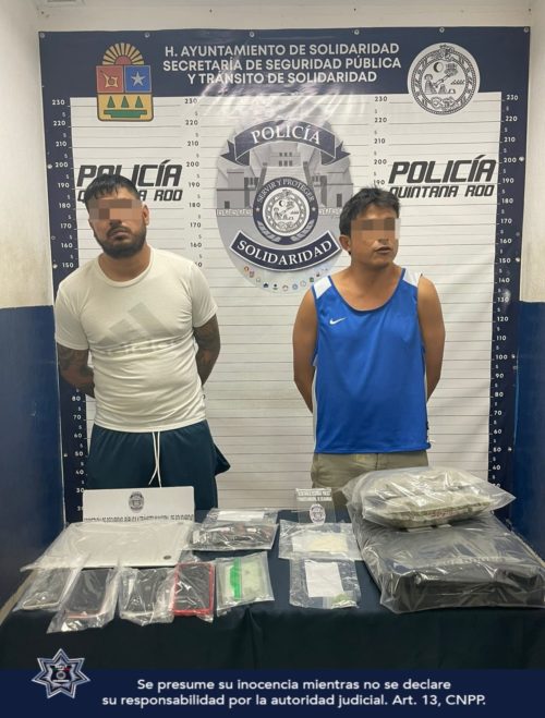 PLAYA DEL CARMEN, Quintana Roo, 08 de enero. – Policías de Secretaría de Seguridad Pública y Tránsito Municipal de Solidaridad aseguraron más de 20 envoltorios y 9 paquetes con posibles narcóticos así como a dos menores de edad y tres sujetos en distintos hechos, por la posible comisión de delitos contra la salud.