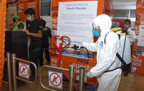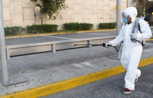 PUERTO MORELOS, Quintana Roo, 19 de abril .- El gobierno de la alcaldesa Laura Fernández Piña lleva a cabo intensas jornadas de sanitización de negocios y paraderos de transporte público en todo el municipio, como parte de las medidas preventivas que se han puesto en marcha en Puerto Morelos, para hacer frente a la pandemia de coronavirus (Covid-19).