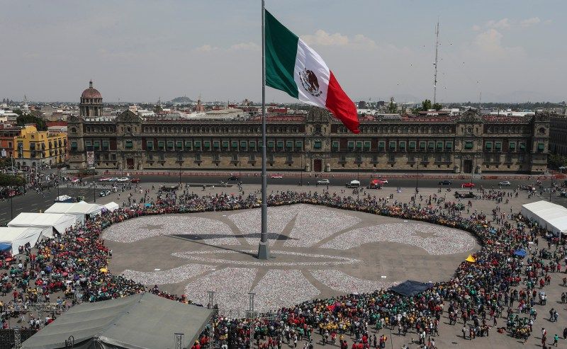 Scouts de México forman inmensa flor de lis en el Zócalo para ayudar a Siria y a Turquía