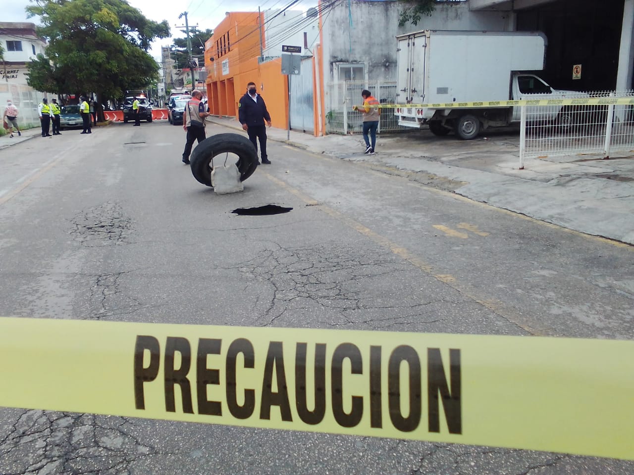 PLAYA DEL CARMEN, Quintana Roo, 20 de enero. –    Se registra un boquete sobre la calle primera con avenida 30 en las inmediaciones de la Colonia centro, en la mañana, no se registraron accidentes en el lugar.