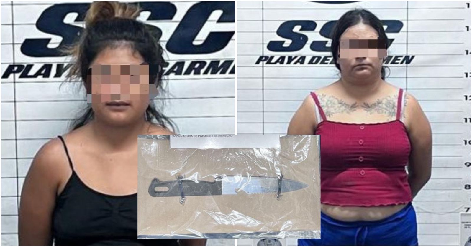 PLAYA DEL CARMEN, Quintana Roo, a 24 de agosto de 2025.- Elementos de la Secretaría de Seguridad Ciudadana de Playa del Carmen detuvieron a dos mujeres que protagonizaron una riña en la colonia In House, donde se agredieron con un cuchillo.