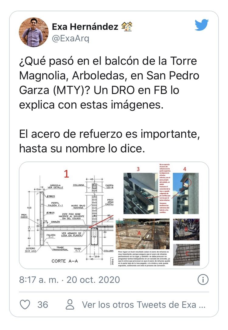 “El complejo inmobiliario publicó un comunicado en el que aseguran que el equipo involucrado en el desarrollo y construcción de los departamentos está evaluando e investigando la situación, y que tomarán ‘acciones contundentes’ en el resguardo del área, así como en el retiro y reconstrucción de la estructura”, se lee en la cuenta del Blog del Regio en Facebook.