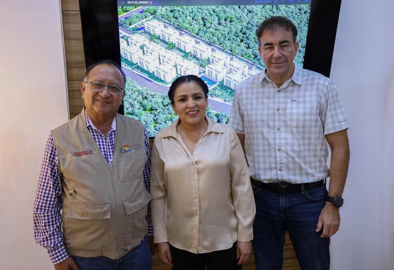 Puerto Morelos, 21 de noviembre de 2025.— La presidenta municipal Blanca Merari Tziu Muñoz informó que la Comisión Nacional de Vivienda (Conavi), a través de su representante en Quintana Roo, Andrés Madrigal Hernández, presentó el anteproyecto para la construcción, en una primera etapa, de 420 casas del Programa de Vivienda para el Bienestar.