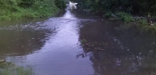 La parte más afectada fue calle Tenacidad, que se ubica en la parte posterior al cementerio Campos del Recuerdo, zona contantemente en inundación en temporada de lluvias.